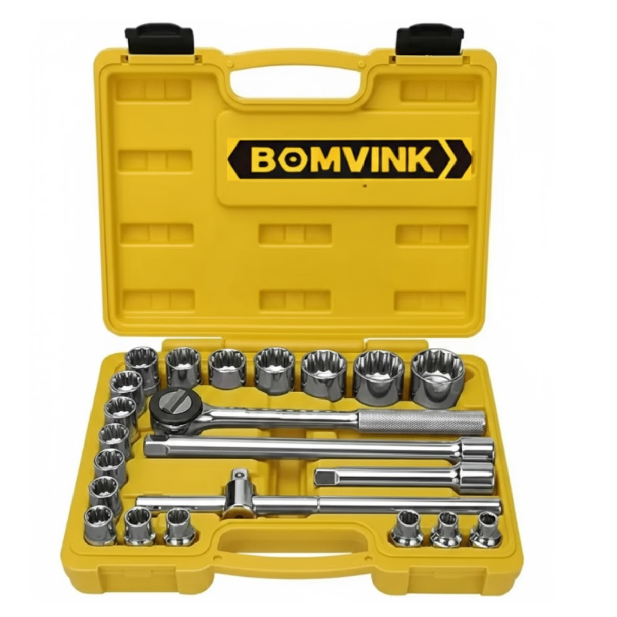 Um kit completo e versátil com 22 peças em aço de alta resistência, ideal para facilitar manutenções automotivas e reparos domésticos com rapidez e organização profissional.